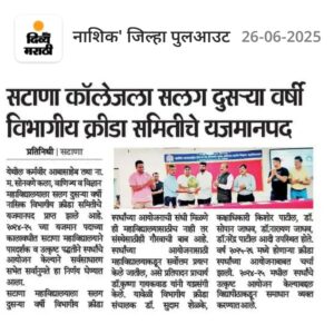 सटाणा महाविद्यालयाला सलग दुसऱ्यांदा वर्ष २०२५-२०२६ साठीचे जिल्हा विभागीय क्रीडा समितीचे यजमान पद मिळाले .. June 25, 2025June 25, 2025 Editorial TeamEditorial Team 0 Comments 12:17 pm Categories: Recent Events Post navigation Previous Previous post: Next Next post: